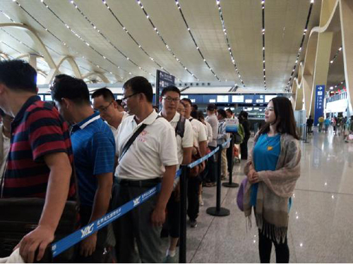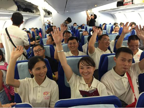 | (第一次坐飛機(jī),老師們很興奮。) |
