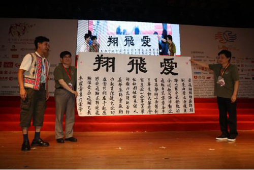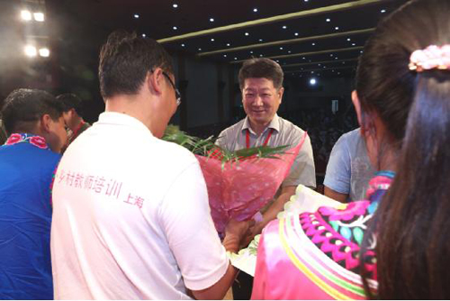 7月25日,愛飛翔開班儀式上,來(lái)自大姚的羅云老師代表鄉(xiāng)村教師發(fā)言,并向愛飛翔全國(guó)發(fā)起人崔永元、華東師大黨委書記童世駿贈(zèng)送了自己親筆寫的書法作品,以表達(dá)對(duì)此次培訓(xùn)的期待。隨后,大姚老師穿著彝族衣服走上舞臺(tái),極具彝族風(fēng)情的歌舞表演贏得滿堂喝彩。中智上海經(jīng)濟(jì)技術(shù)合作公司黨委副書記、工會(huì)主席郭平出席活動(dòng)并發(fā)言,郭書記對(duì)鄉(xiāng)村教師們的到來(lái)表達(dá)了熱烈的歡迎,并從企業(yè)社會(huì)責(zé)任的角度講述中智長(zhǎng)期來(lái)一直堅(jiān)持和踐行的公益信念。