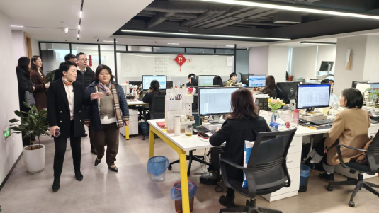 座談會上,樊崢區長重點介紹了拱墅區人力資源服務業扶持政策,她表示,希望能夠與中智浙江公司進一步加強對接交流,共同為拱墅區人力資源產業發展注入新的動能。郭春麗副總經理對樊崢區長一行的來訪表示歡迎,并介紹了公司近年的業務發展、組織架構等情況,分享了過去一年在與各大知名企業合作中探索形成的特色項目。雙方還在政策落地、企業配套服務等多個方面達成共識。未來,中智浙江公司將繼續加強在推動產業集聚與轉型升級中的帶動作用,為共同打造拱墅區“總部經濟集聚地”持續助力。調研期間,樊崢一行還參觀了中智浙江公司辦公區域。
